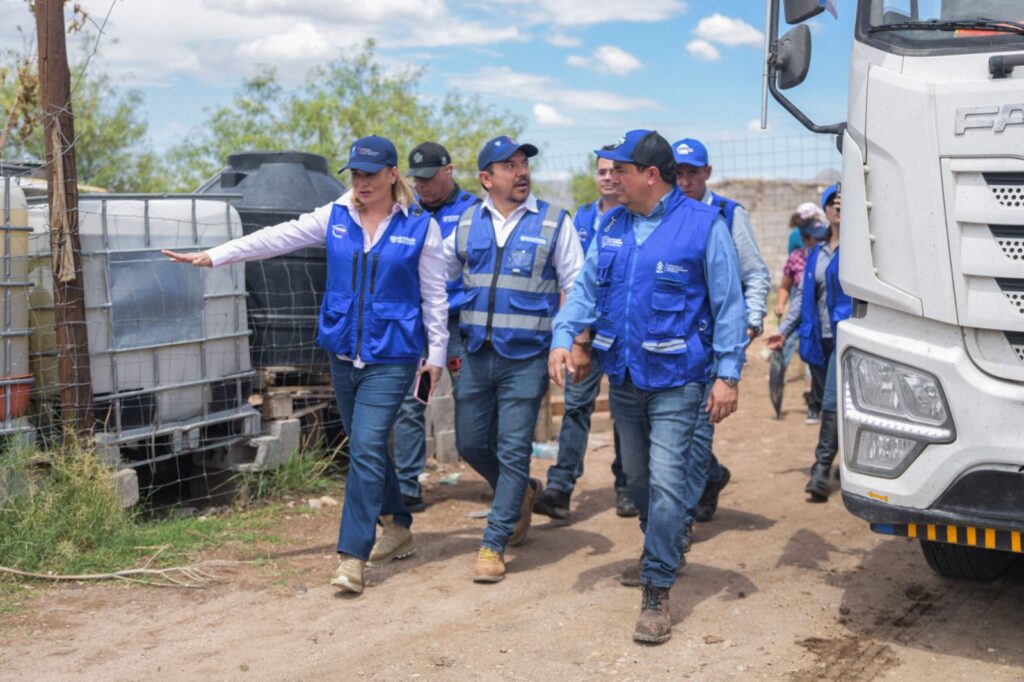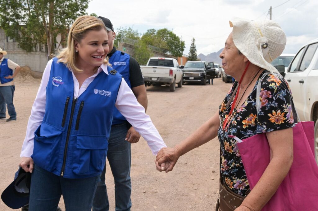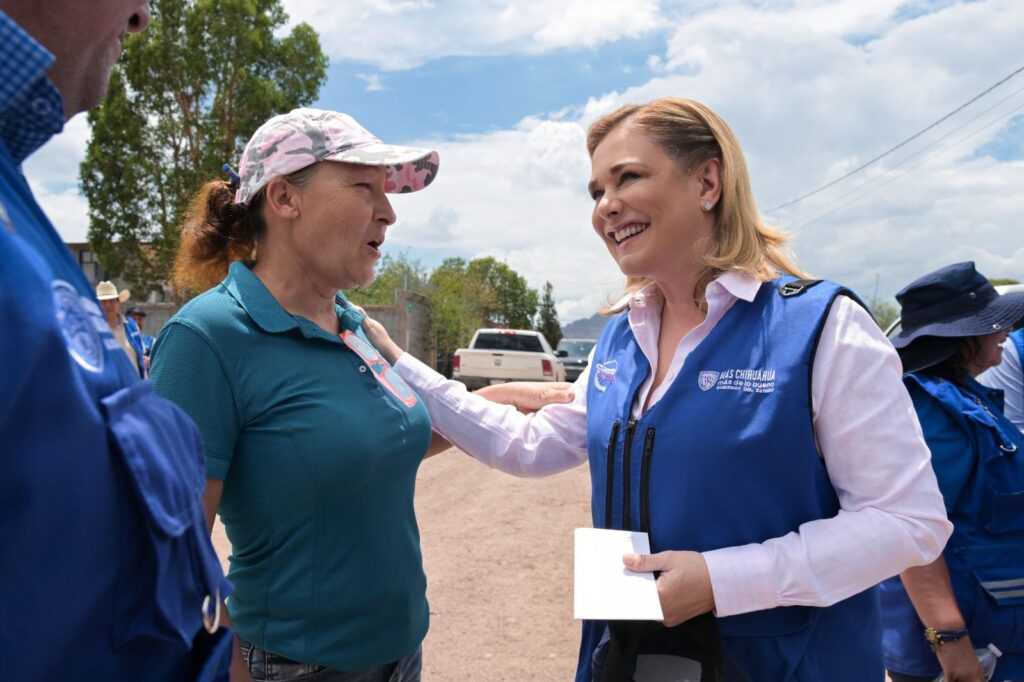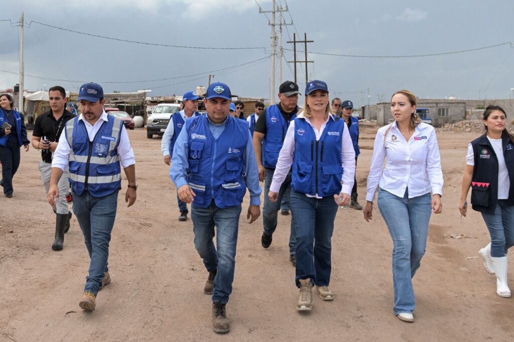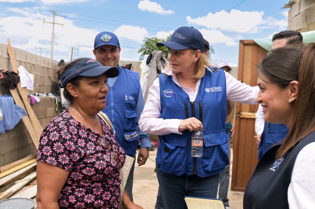 La gobernadora Maru Campos recorrió las calles de la colonia Granjas San Joaquín, al sur de Chihuahua capital, para atender y escuchar las necesidades de las familias que se vieron afectadas por las recientes lluvias.