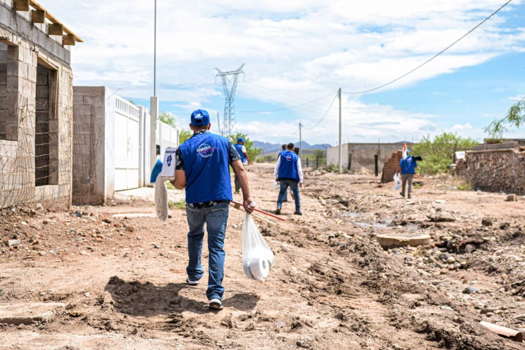 Maru Campos supervisó los trabajos de limpieza y desazolve que se realizan en la colonia, para remover las piedras y escombro que obstruyeron los accesos principales y permitir el tránsito seguro a los habitantes.