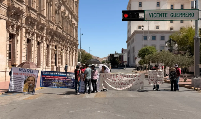 Bloqueo frente a Palacio de Gobierno provoca caos vial en el centro de Chihuahua