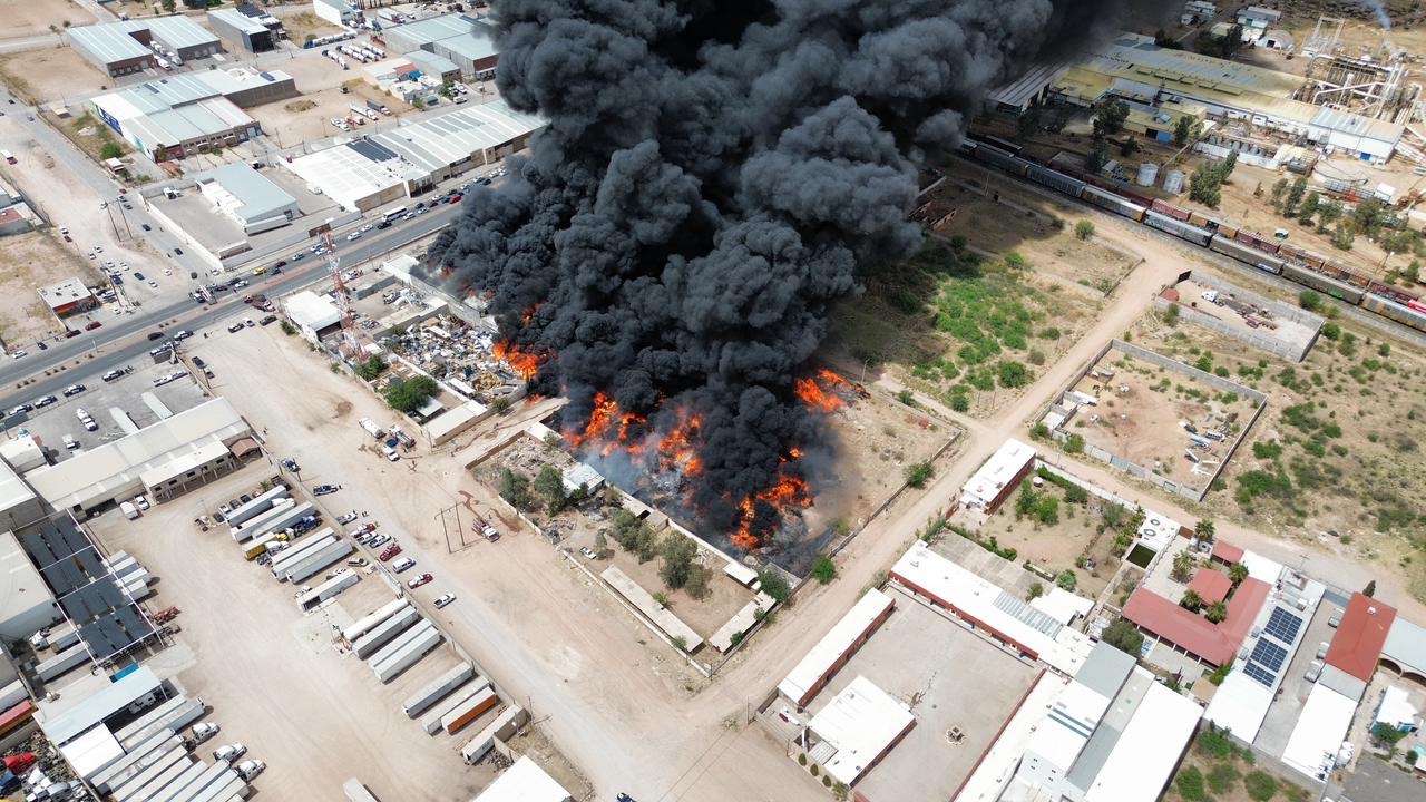 H. Ciudad de Chihuahua, Chih., a 26 de abril de 2026.- La tarde de este domingo personal del H. Cuerpo de Bomberos se encuentra atendiendo y trabajando en la sofocacion total del incendio registrado en la empresa Procesadora y Recicladora de Materiales Industriales, ubicada en las calles Sierra de la Cal y calle 57, en la colonia Primero de Mayo, donde se almacenaban cerca de 160 toneladas de plástico.