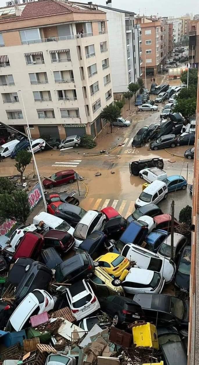 Según los reportes locales, la lluvia equivalente a un año de precipitaciones cayó sobre la ciudad de Chiva, cerca de Valencia, lo que provocó una serie de fuertes inundaciones de barro y agua en varias localidades cercanas.