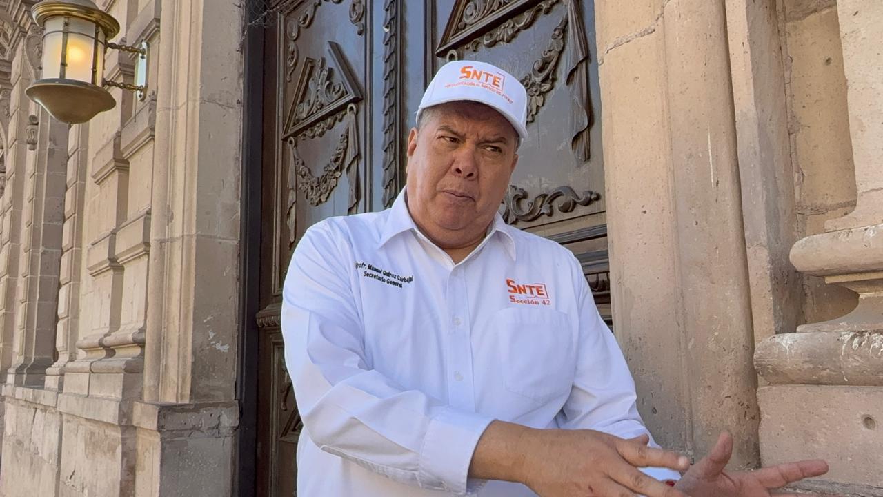 El dirigente de la Sección 42 del Sindicato Nacional de Trabajadores de la Educación, Manuel Quiroz Carbajal durante la marcha acudió a Palacio de Gobierno, esto con el fin de mantener una reunión con el subsecretario de Gobernación Oscar Gonzales Luna.