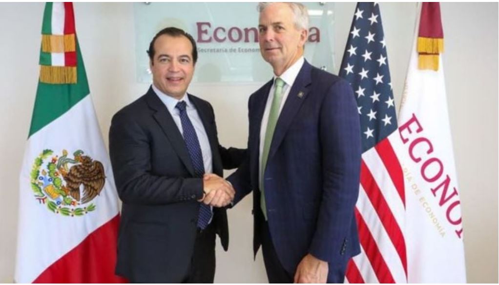 El subsecretario de Comercio Exterior de la Secretaría de Economía, Luis Rosendo Gutiérrez Romano, y el subsecretario de la Representación Comercial de Estados Unidos (USTR), Jeffrey Goettman, se reunieron en la Ciudad de México para continuar las conversaciones técnicas del Proceso de Revisión del TMEC, que tiene como fecha clave el 1 de julio de 2026.