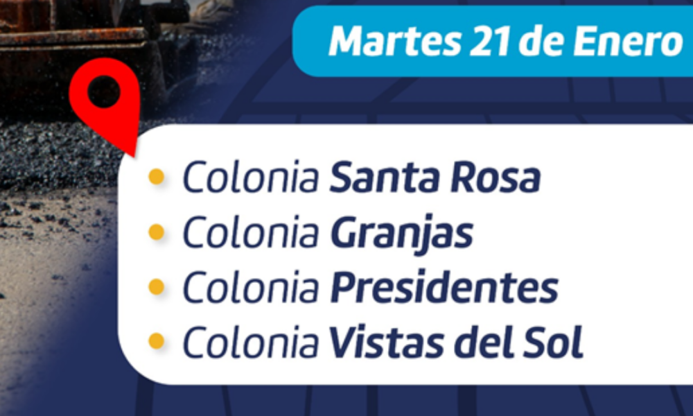 El Gobierno Municipal, intervendrá con bacheo este 21 de enero en calles de las colonias Santa Rosa, Granjas, Presidentes y Vistas del Sol. Las cuadrillas de...