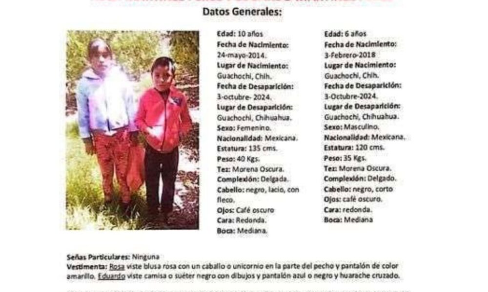 Solicitan ayuda para localizar a menores desaparecidos en Guachochi. Fmiliares y amigos solicitaron a través de las redes sociales el apoyo para localizar a los hermanos...