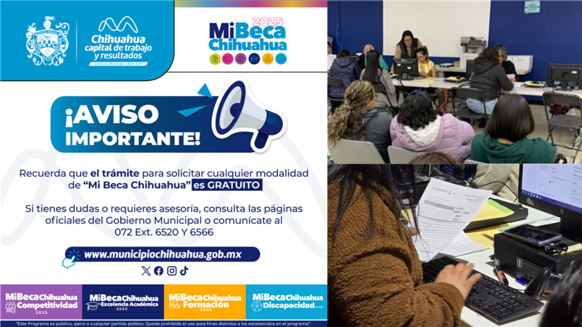 La Dirección de Desarrollo Humano y Educación del Gobierno Municipal, reitera que el trámite del programa “Mi Beca Chihuahua 2025″ en sus seis modalidades es completamente gratuito y no existen gestores o intermediarios para poder realizar dichos trámites, por lo que se exhorta a evitar compartir información falsa, errónea o no vigente, por lo que es importante consultar vías de información oficial.