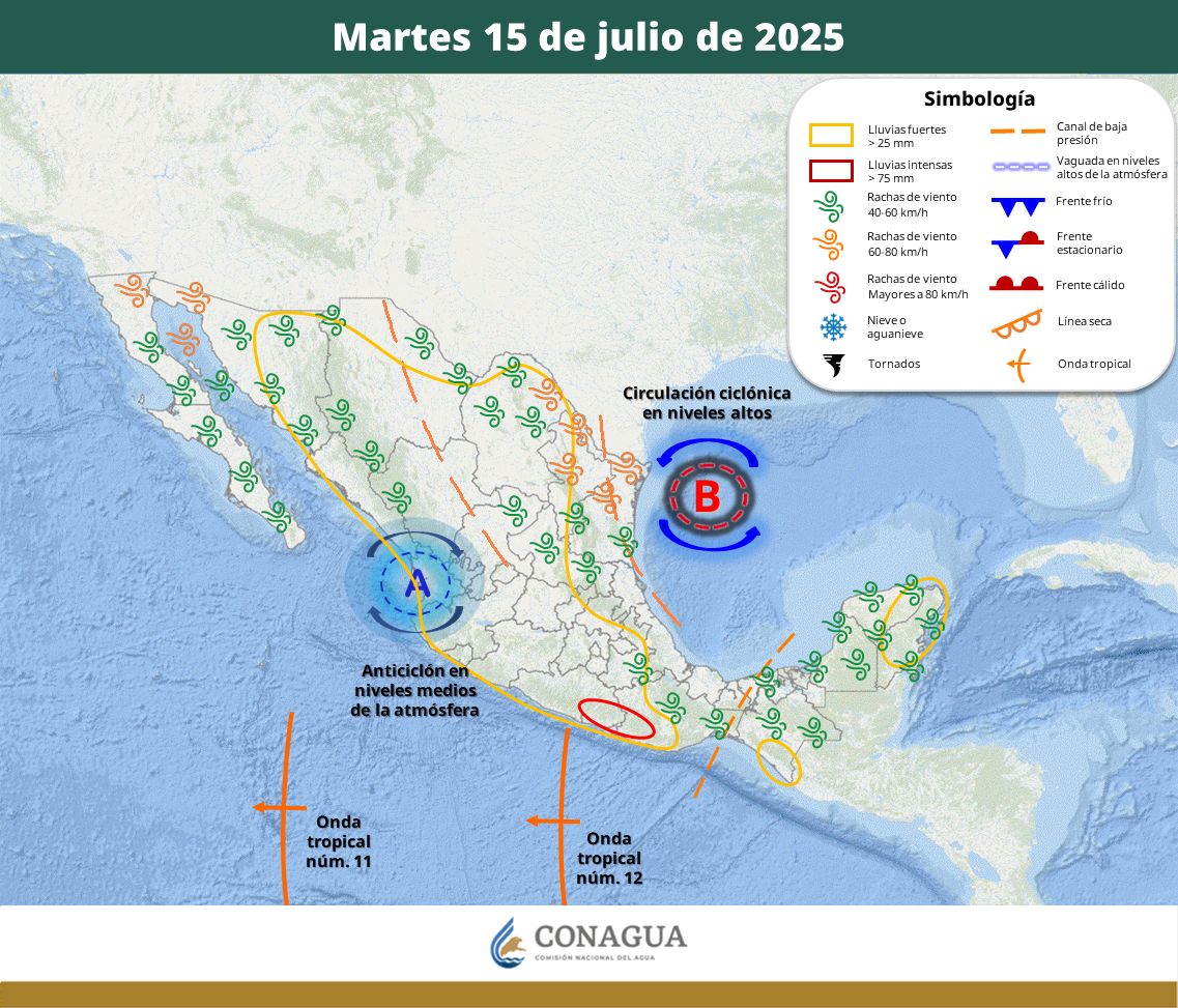 La CEPC exhorta a la población a mantenerse informada a través de fuentes oficiales y a seguir las recomendaciones de protección civil ante la posibilidad de lluvias intensas, actividad eléctrica y fuertes ráfagas de viento.