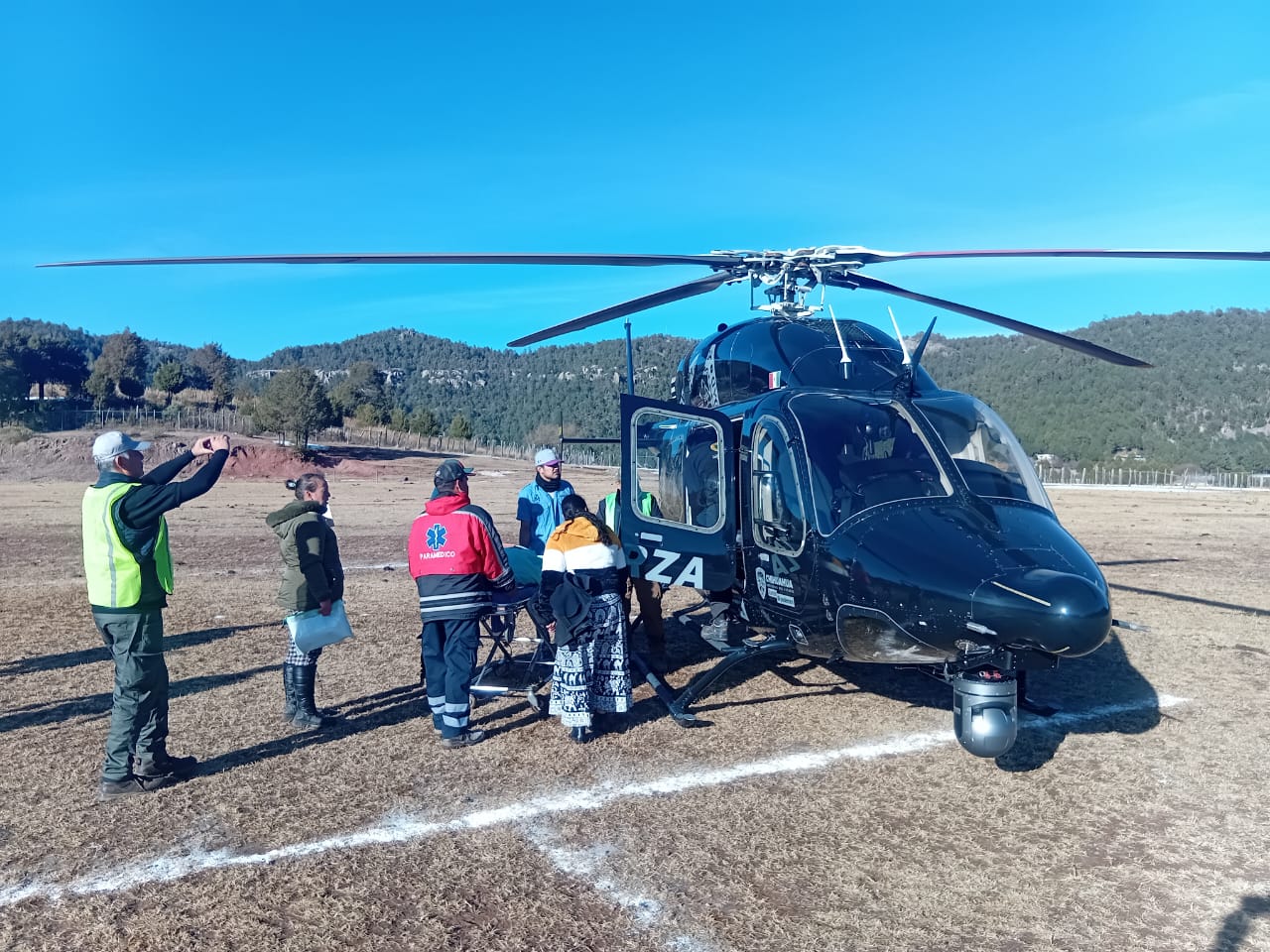 Personal de la Coordinación Estatal de Protección Civil (CEPC), la Secretaría de Seguridad Pública (SSPE) y la Secretaría de Salud, trasladó vía aérea a una paciente con una emergencia gineco-obstétrica, desde la comunidad de Huajumar, municipio de Ocampo, a ciudad Cuauhtémoc.