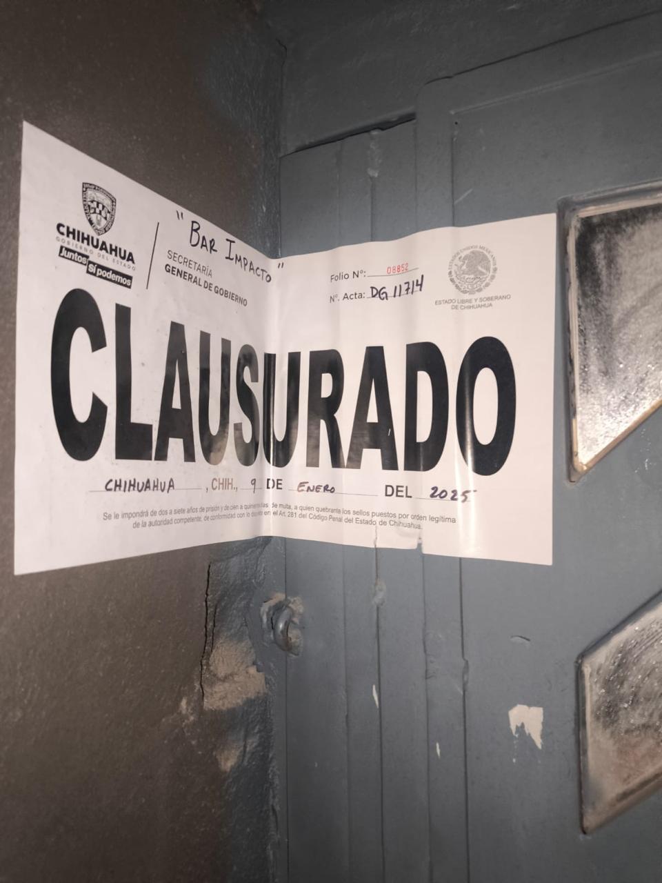 La Secretaría General de Gobierno, a través de la Subsecretaría de Gobernación, durante la semana del 6 al 12 de enero de 2025, efectuó 265 inspecciones a establecimientos que expenden y/o comercializan bebidas alcohólicas, las cuales arrojaron un total de 16 clausuras, cinco en Chihuahua, una en Janos y diez en Ciudad Juárez.