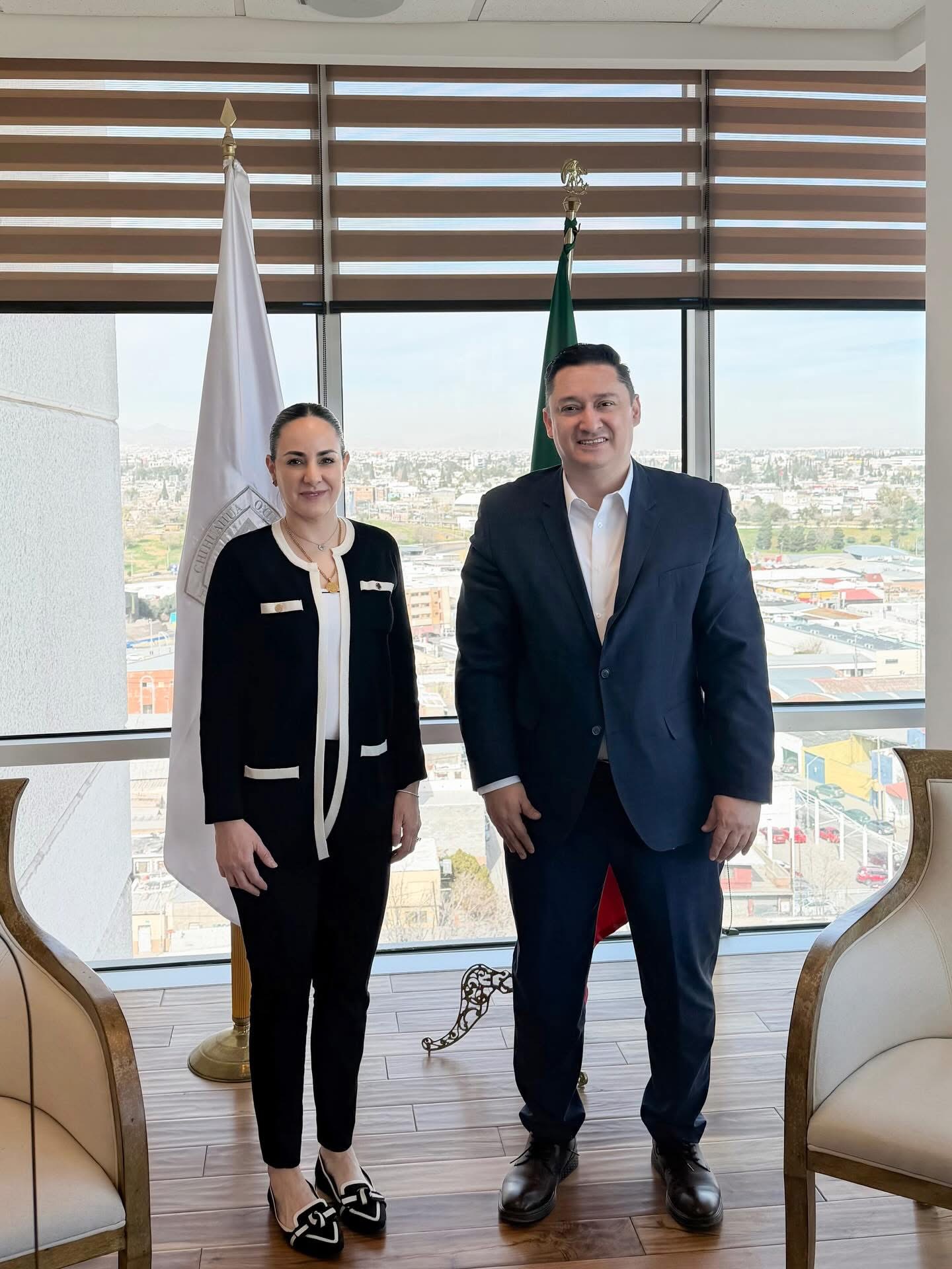 El diputado Alfredo Chávez sostuvo una reunión de trabajo con la magistrada presidenta del Tribunal Superior de Justicia del Estado de Chihuahua, Marcela Herrera Sandoval, con el objetivo de fortalecer el diálogo y la cooperación entre los poderes Legislativo y Judicial.