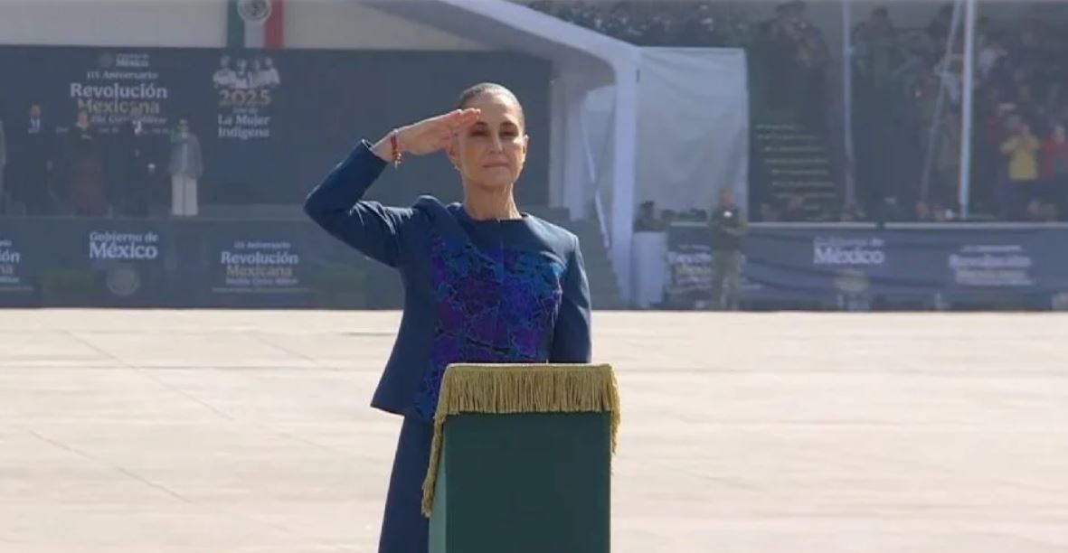 La presidenta Claudia Sheinbaum encabezó este jueves el desfile cívico militar por el 115 aniversario del inicio de la Revolución Mexicana en el marco de las marchas convocadas para esta mañana.