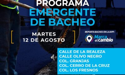 El Gobierno Municipal, a través de la Dirección de Obras Públicas, atenderá baches este 9 de septiembre, mediante el programa emergente, en las colonias Las Granjas,...