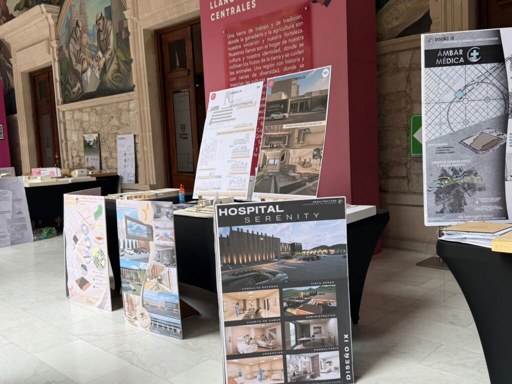 El evento, realizado en el patio central de Palacio de Gobierno, reunió proyectos académicos desarrollados por estudiantes, quienes exhibieron sus propuestas de diseño arquitectónico ante docentes, autoridades universitarias y visitantes.